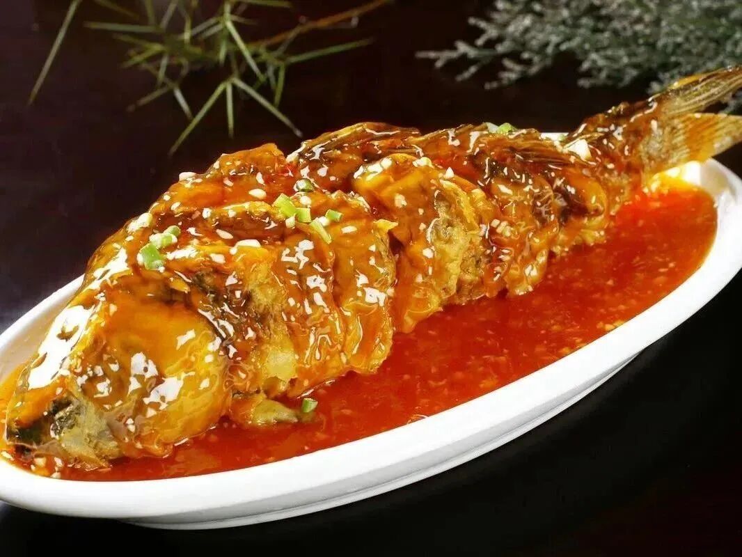 糖醋鲤鱼”是山东济南的传统名菜。济南北临黄河,黄河鲤鱼不仅肥嫩鲜美,而且金鳞赤尾,形态可爱,是宴会上的佳肴。《济南府志》上早有“黄河之鲤,南阳之蟹,且入食谱”的记载。