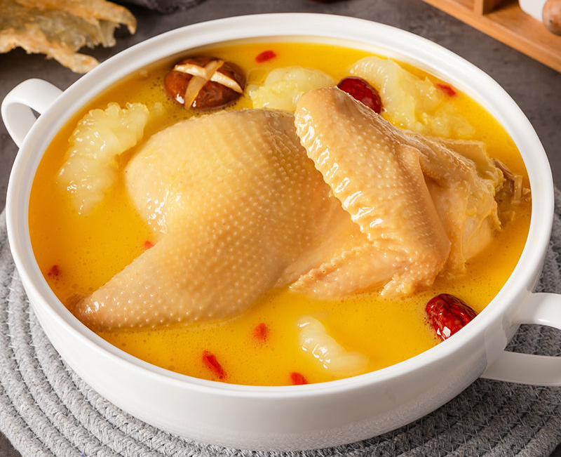 鸡腿肉、花胶、银耳、竹荪、枸杞、XSX金汤花胶鸡汤底